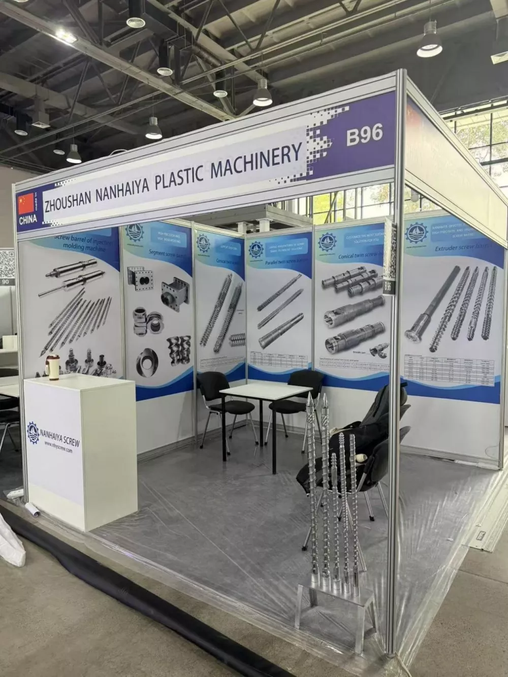 Zhoushan Nanhaiya huet héich verschleißbeständeg Fässer a Schrauwen op d'Shenzhen an Tashkent Gummi a Plastik Ausstellungen bruecht.