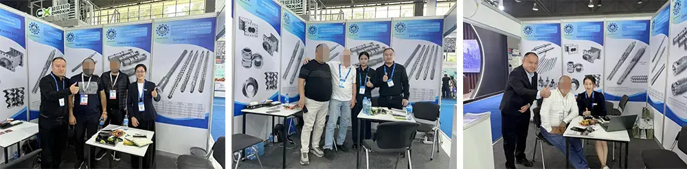 Op der Ausstellung huet deZhoushan NanhaiyaDe Stand war voller Besucher. Star Produkter op der Ausstellung gewisen, wéi d'Dual-Legierung Schraube a Fass an d'nitridéiert Schraube a Faass, hunn verbreet Opmierksamkeet ugezunn mat Performanceparameter déi wäit iwwer d'Industrienormen iwwerschreiden. Dem Nanhaiya seng Produkter sinn all aus 38CrMoAl Legierungsstahl konstruéiert a gi gemaach duerch verschidde Prozesser, inklusiv Quenching an Tempering, Charakteriséierung a Präzisiounsbearbechtung. Besonnesch de Barrel Entladungshafen, e vulnérabele Sektioun, huet eng innovativ, vollkrees Carbid Spraybeschichtung, déi eng intern Hardness vun 62HRC erreecht, eng bedeitend Verbesserung iwwer den Industrieduerchschnëtt vu 58HRC.